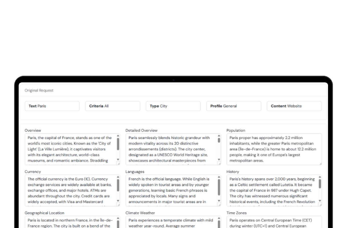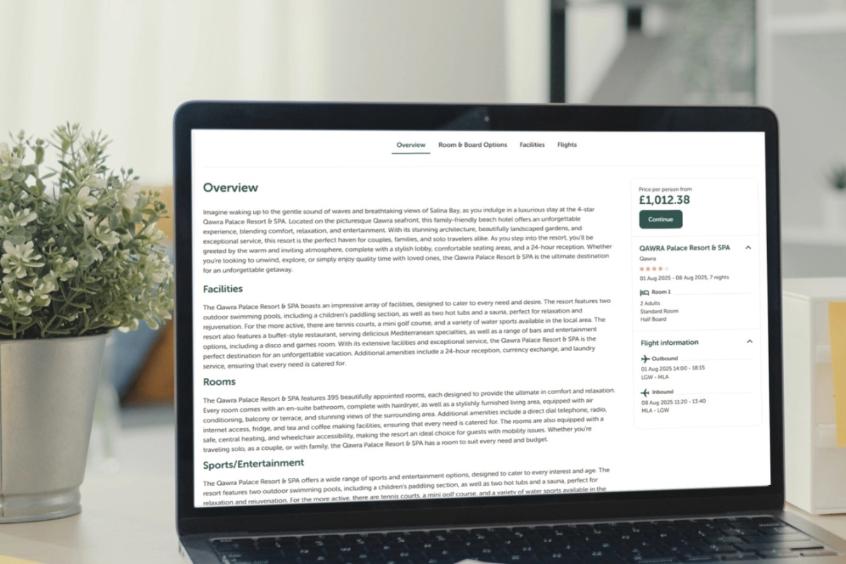Our Content product transforms how travel brands produce destination and product information. It automates large-scale content creation and rewriting, delivering consistent, optimised and engaging copy for every audience and channel.