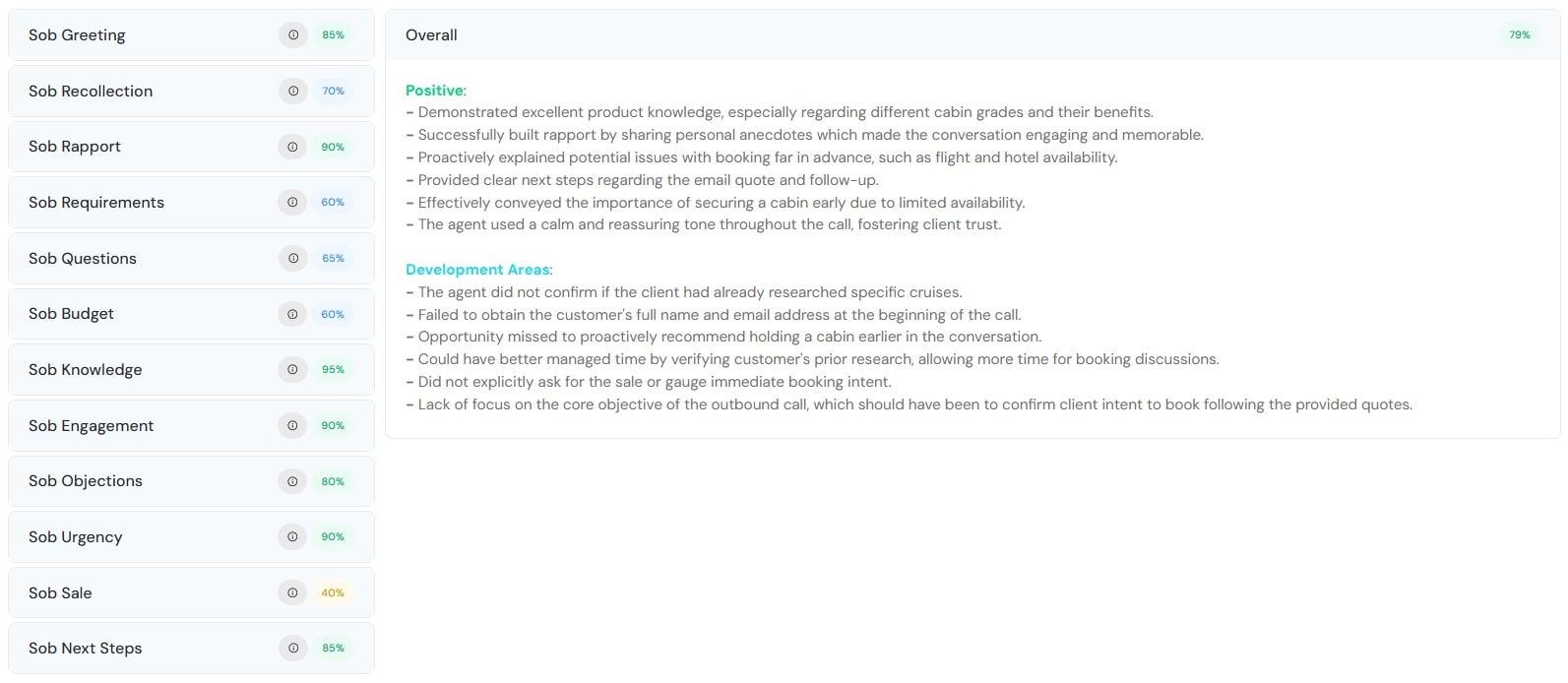 You can set your chosen criteria for what makes a great call. For a sales representative, these might include:
